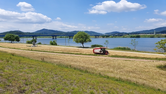 [칠곡=경북IT뉴스] 칠곡군(군수 백선기)은 12일 낙동강 흰가람 둔치 16,500㎡(5천여 평)에 재배한 보리를 수확했다.