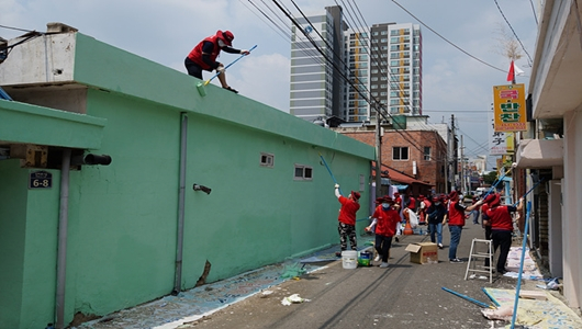 6월 15일에는 LG두드림봉사단(LG 자매사통합봉사단) 봉사단원 가족 및 친구와 함께, 신평2동 일대 노후된 담벼락을 깨끗한 담벼락으로 채색하였으며, 다양한 그림을 넣어 아름답고 밝은 거리로 만들었다.