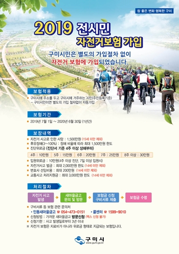 구미시, 2019년 구미시민 자전거보험 가입 완료