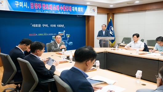 이는 스마트폰 및 TV에 사용되는 반도체 등의 제조과정에 필요한 플루오린 폴리이미드와 반도체 공정에 필수적인 소재인 에칭가스, 리지스트 3개 품목의 수출규제를 강화하겠다는 일본 경제산업성의 발표에 따른 대책회의로서 구미 관내 기업에 미칠 영향을 우려한 장세용 시장의 신속한 대응조치에 따라 이뤄졌다.