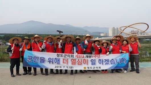 [청도=경북IT뉴스] 청도군의회(의장 박기호)는 5일, 제8대 1주년을 맞이해 청도의 젖줄인 청도천변에서 하천변 잡목제거 및 환경정화활동을 펼쳤다.