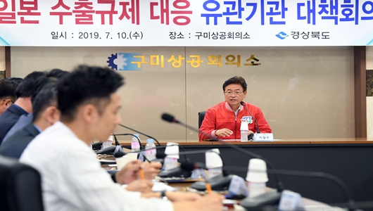 이번 회의에는 디스플레이용 투명필름인 플루오린 폴리이미드, 반도체 공정에 필수로 사용되는 포토 레지스트, 에칭가스 3개 품목에 대한 일본의 대한(對韓) 수출 간소화 우대조치를 폐지하겠다는 일본 경제산업성의 발표에 따라 도내 기업에 미칠 영향이 우려되는 가운데 경북도, 구미시, 대경중기청, 구미상공회의소, 구미전자정보기술원, 한국무역협회 대구경북지역본부, (재)경상북도경제진흥원, 경북신용보증재단, 대구경북연구원 등 수출지원기관과 관련기업 대표들이 함께 자리했다.