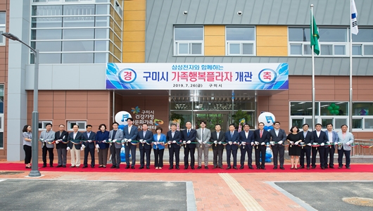 구미시 가족행복플라자는 보편적, 예방적 복지의 새로운 모델로써 도내 최초 민·관 협력사업으로, 삼성전자 임직원 기탁금 23억원, 시비 12억원으로 총35억원을 투자한 시설이다