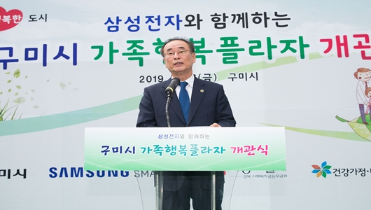 [구미=경북IT뉴스] 구미시에서는 26일 구미시 산책길 73에 위치한 부지 2,393㎡(725평), 건축 연면적 989.82㎡(300평), 지상 3층 규모로 건립한 구미시 가족행복플라자 개관식을 가졌다.