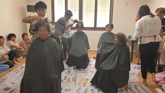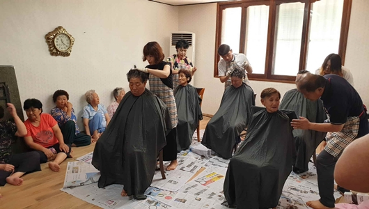 구송봉사단, 경로당 이용 어르신들게 이·미용 봉사