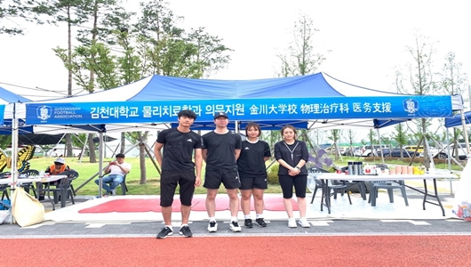 [김천=경북IT뉴스] 김천대학교 물리치료학과는 제1회 한∙중 유소년 국제축구대회에 선수들의 부상 예방 및 경기력 향상을 위해 물리치료 봉사활동에 참여했다고 밝혔다.