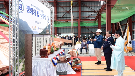 [김천=경북IT뉴스] 김천시(시장 김충섭)는 23일 하야로비공원내 평화의 탑 5층에서 지역 시의원 및 공사 관계자 등이 참석한 가운데 건축물의 준공까지 사업의 원활한 추진과 안전시공을 기원하는 상량식을 거행했다.