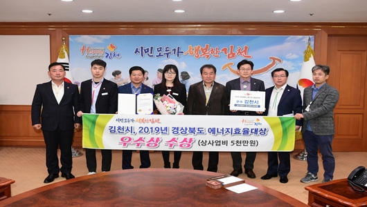 [김천=경북IT뉴스] 김천시(시장 김충섭)는 지난 8일 경상북도가 주최하고 한국에너지공단이 주관한 ‘2019년 경상북도 에너지효율대상’ 공공부문 우수상을 수상해 상사업비 5천만원을 받았다.