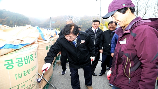 [안동=경북IT뉴스] 권영세 안동시장은 11월 13일 2019년 공공비축미곡 수매 현장인 와룡면 주계리 수매장을 찾아 농민들을 격려하고 쌀 수급 안정화와 가격 안정에 힘쓰겠다고 밝혔다.