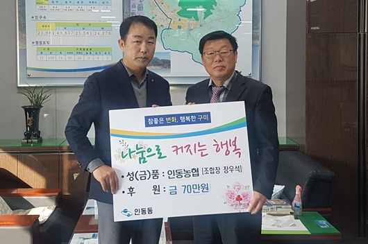 문창균 인동동장은 “항상 어려운 이웃을 생각하며 사랑을 실천해주시는 장우석 조합장을 비롯한 임직원들에게 감사드리며, 우리의 작은 관심과 실천이 지역에 커다란 희망을 불어넣을 수 있는 계기가 됐으면 한다.”고 말했다.