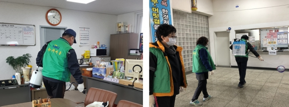 [구미=경북IT뉴스] 구미시 선산읍(읍장 박종수)에서는 21일 읍 행정복지센터 및 선산읍새마을지도자협의회(회장 서형동), 선산읍새마을부녀회(회장 이성희)가 함께 참여해 신종 코로나바이러스의 예방 및 확산방지를 위해 읍내 경로당 및 마을회관을 중심으로 긴급 방역을 실시했다.