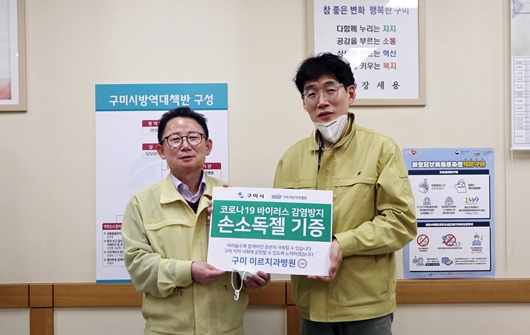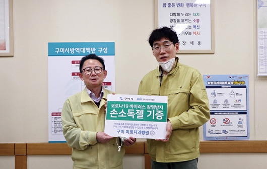 먼저 지난달 25일 구미 미르치과병원(대표원장 이상화)으로부터 손소독젤 500㎖ 800개(1천만원 상당)를 지원받아, 기업지원 부서와 협조해 관내 취약사업장에 우선 배부했다.