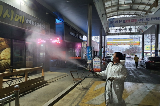 지난 2월 25일부터 장날(5일장) 노점상의 임시휴장에 들어간 군은 특히, 왜관·약목·동명시장과 주변 상점가의 소독에 더욱 집중하고 있다.