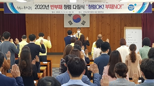 [구미=경북IT뉴스] 구미교육지원청(교육장 신동식)은 6일 대회의실에서 직원 100여 명이 참석한 가운데 공정하고 투명한 공직사회 조성과 신뢰받는 ‘따뜻한 경북교육’ 구현을 위한 반부패 청렴 다짐식을 가졌다.