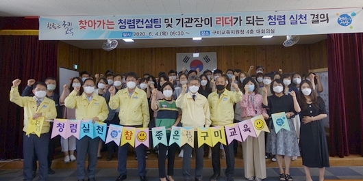 [구미=경북IT뉴스] 구미교육지원청은 4일 대회의실에서 전 직원이 참석한 가운데 청렴도 향상을 위한 찾아가는 청렴 컨설팅과 기관장이 리더가 돼 청렴 실천을 결의했다.