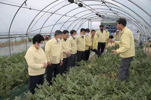 산업건설위원들은 수박 방임재배 방법과 농촌지역 애로사항을 청취하고 현장을 둘러봤으며, 새로운 기술을 개발해 품질 개선을 위해 노력하고 있는 농가주를 격려했다.