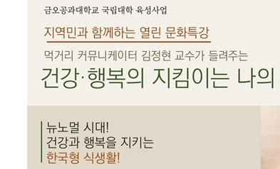 강의 주제는 김정현 배재대 교수의 ‘건강·행복의 지킴이는 나의 먹거리!’로 오는 7월 10일부터 31일까지 금오공대 강의지원시스템(LMS)에서 공개된다. 금오공대 구성원뿐만 아니라 건강관리에 관심 있는 지역민이면 누구나 들을 수 있다.