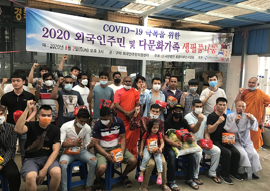 진오스님은 반가운 인사를 건네며 “한국에서 3개월 이상 살게 되는 사람을 주민이라 부른다”고 외국인들에게 알려줬다. 외국인 노동자 센터에서 외국인 주민지원센터로 바뀜을 말하며, 한국말책이 나온 것을 잘 활용해 주길 당부했다.