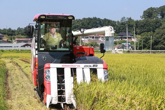 이날 수확한 햅쌀 품종은 ‘해담쌀’로 지난 4월 25일 모내기 후 농협조공법인과 계약 재배해 전량 수매·가공 한 후 추석 전 대구, 부산 등 도시지역 농협하나로마트를 통해서 소비자들 식탁과 추석 제사상에 오를 예정이다.