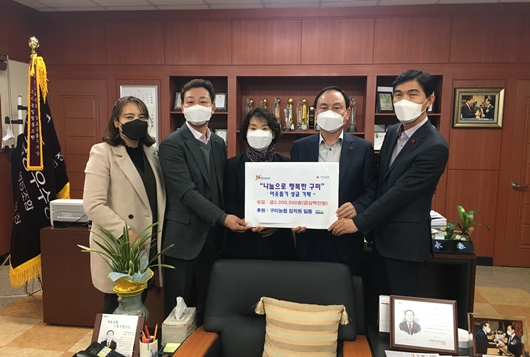 김영태 조합장은 “지역의 어렵고 소외된 이들이 조금이나마 행복한 연말을 보냈으면 하는 바람에서 구미농협 임직원들의 사랑을 모아 이웃돕기 성금을 기탁하게 됐다”며, “앞으로도 지역사회와 함께 발전하는 구미농협이 되도록 꾸준한 관심을 가지고 노력하겠다” 고 말했다.