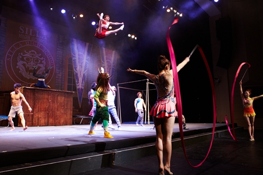 ‘플라잉’은 기계체조와 리듬체조 등 국가대표 출신 배우들이 참여해 체조기술뿐만 아니라 치어리딩, 마샬아츠 등을 접목한 역동적인 무대를 연출한다.