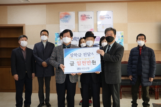 [칠곡=경북IT뉴스] ㈜국인산업 박무웅 대표는 지난 28일, 석적고등학교(교장 송재봉) 교장실에서 석적교육발전위원회(위원장 김덕구) 임원들과 교직원들이 참석한 가운데 장학금 1천만 원을 기탁했다.