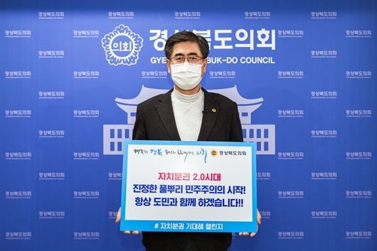 [경북=경북IT뉴스] 도기욱 경북도의회 부의장은 21일 '자치분권 2.0'시대의 개막을 응원하는 '자치분권 기대해' 챌린지에 동참했다. 이번 챌린지는 대통령 소속 자치분권위원회에서 지난해 12월16일 처음 시작됐다.