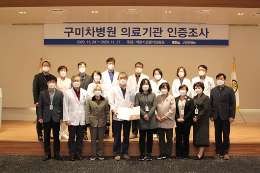 구미차병원 김병국 병원장은 "코로나19로 인해 인증조사가 두차례 연기 돼 준비하는 과정이 힘들었지만, 전 교직원이 의료서비스 질 향상과 환자안전을 위해 지속적으로 노력한 결과"라며 "이번 인증 획득을 통해 고객들이 더욱 만족할 수 있는 의료서비스 제공과 지역민의 건강증진에 앞장설 것”이라고 밝혔다.