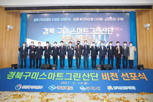 [구미=경북IT뉴스] 구미시는 지난 12일 한국산업단지공단, 경북도와 함께 최근 국내 최대 전자산업단지 집적지인 구미산단의 스마트그린산단 전환을 위한 미래청사진과 로드맵을 공개하는 ‘경북구미스마트그린산단 비전 선포식’을 개최했다.