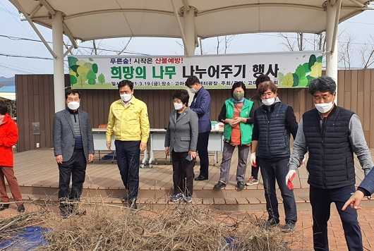 지대근 고아읍장은 “지속되는 코로나로 모두가 지친 요즘 정성껏 나무를 심고 수확하는 기쁨을 나누길 바라며, 후손들에게 건강한 숲을 물려주기 위해 산불예방을 위한 지역주민들의 적극적인 협조와 각별한 주의를 부탁드린다.”고 말했다.