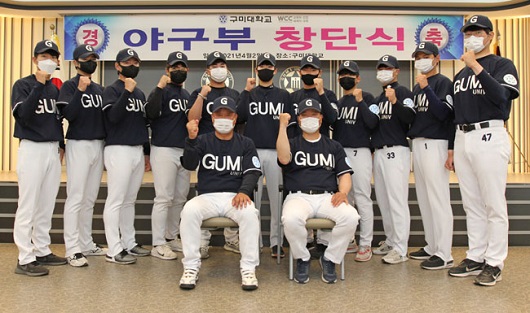 구미대 야구부는 김익 감독, 최재호 코치, 유민후 주장 등 선수 11명으로 출범했다.