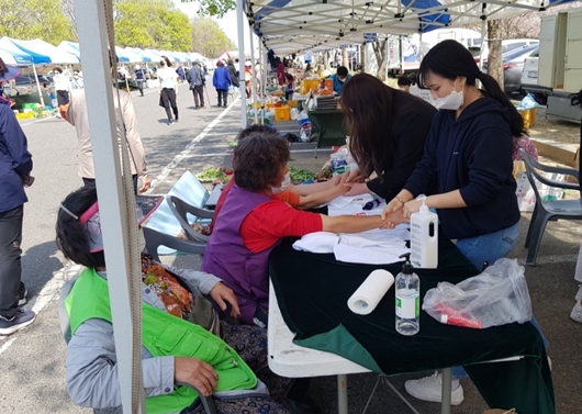 [구미=경북IT뉴스] 구미시는 지난 2일 금요장터(금오산 대주차장)에서 구미대학교 피부뷰티맞춤화장품과 교수 및 학생 20명이 참여한 가운데 구미대학교 재능기부 봉사활동을 진행했다.