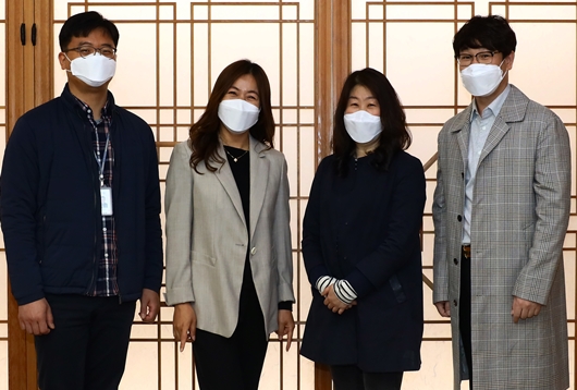 이상기, 박명주, 이정홍, 김현석(좌로부터) | [칠곡=경북IT뉴스] 칠곡군은 군정발전과 주민 편익 증진을 위해 노력한 공무원을‘2020년 하반기 적극행정 우수공무원’으로 선발했다.