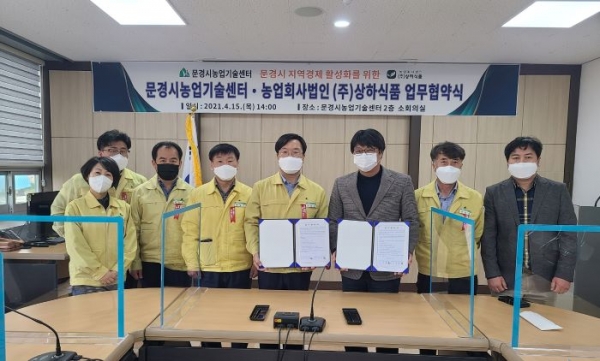 [문경=경북IT뉴스] 문경시농업기술센터는 지난 15일 농산물 가공전문업체인 농업회사법인 ㈜상하식품과 지역경제 활성화를 위한 업무협약을 체결했다.