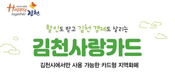 김충섭 김천시장은 “김천시랑상품권(카드)이 소상공인과 자영업자들에게 큰 도움을 주는 지역화폐로 자리잡았다고 판단된다”며, “연말까지 10% 할인판매를 실시하므로 김천사랑카드를 많이 구매해 생활비도 절약하고, 지역경제에도 도움을 주기 바란다.”고 말했다.