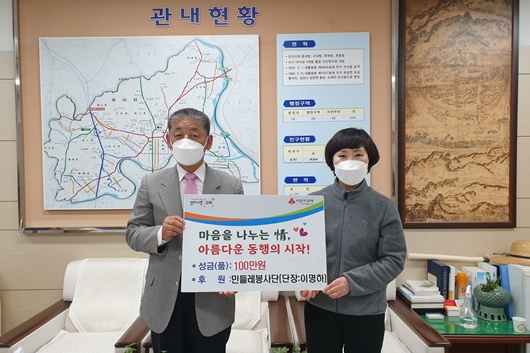 [구미=경북IT뉴스] 구미시 선산읍(읍장 유경숙)에서는 지난 10일 민들레봉사단(단장 이명하) 회원이 참석한 가운데 이웃사랑 후원금(100만원) 기탁식이 있었다.