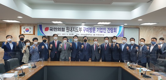 이번 간담회는 국민의힘 원내지도부와 구미 기업인들 간 반도체‧미래첨단소재 발전방향은 물론, 지역현안에 대해 자유롭게 소통하기 위해 마련됐으며, 참석자 소개, 인사말씀, 자유토론 및 지역현안 건의, 폐회 순으로 진행됐다.