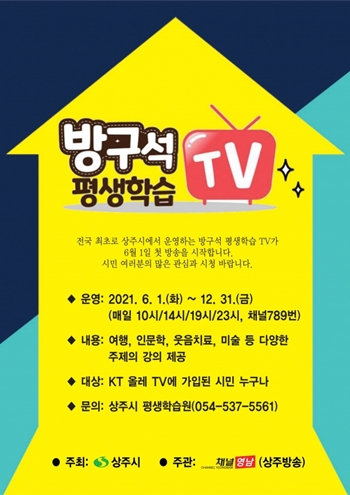상주시에 따르면 시민들에게 유익한 평생학습 교육을 이제 집에서도 수강할 수 있는 기회를 제공한 가운데 이 방송의 명칭을 ‘방구석 평생학습 TV’로 정했다고 밝혔다.