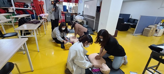 개정된 2020년 최신 심폐소생술 가이드라인 및 QCPR장비를 통해 가슴압박 및 AED 사용법등 교육을 실시했으며, 가정에서 빈번하게 일어날수 있는 어린이안전사고 및 응급상황대처요령 등을 실습했다.