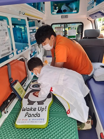 이날 (사)대한구조협회는 원생에게 소방대피훈련과 구급차 동승과 심폐소생술 교육 등도 함께 교육했다.