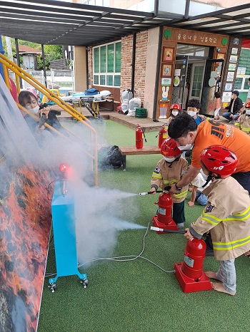 [구미=경북IT뉴스]소방청 소관 (사)대한구조협회는 지난 27일  2021년 행정안전부 국고보조사업 EMS응급의료체계 대국민 안전교육으로 구미시 관내 어린이집에서 원생 100여 명을 대상으로 화재 발생 시 소화기 사용법 교육을 실시했다.