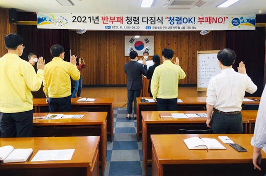 [구미=경북IT뉴스] 경상북도구미교육지원청(교육장 신동식)은 1일 구미교육지원청 대회의실에서 ‘따뜻한 구미교육’ 구현을 위한 2021년 반부패 청렴 다짐식을 개최했다.