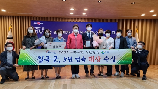 [칠곡=경북IT뉴스] 칠곡군은 경북 23개 시군을 대상으로 실시한 2021년 지방세정 종합평가에서 ‘대상’으로 선정되어 도내 최초 5년 연속 1위의 기관 표창을 받았다.