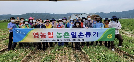 이번 작업에는 농협임직원과 해평여성봉사단체 등 총 35명이 참여해 지역 농가의 양파 수확을 도왔다.