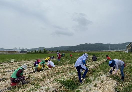 구미 해평농협, 양파농가 일손돕기 실시