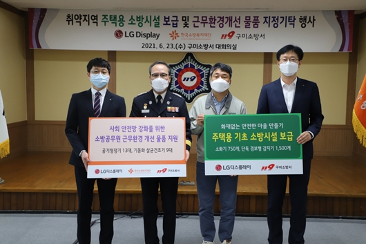 2017년부터 이어온 LG디스플레이의 안전한 구미 만들기 사업의 연장선으로 23일 구미소방서에서 6500만 원 상당의 전자제품과 주택용 기초 소방시설을 전달했다.