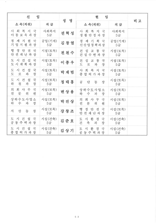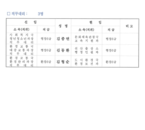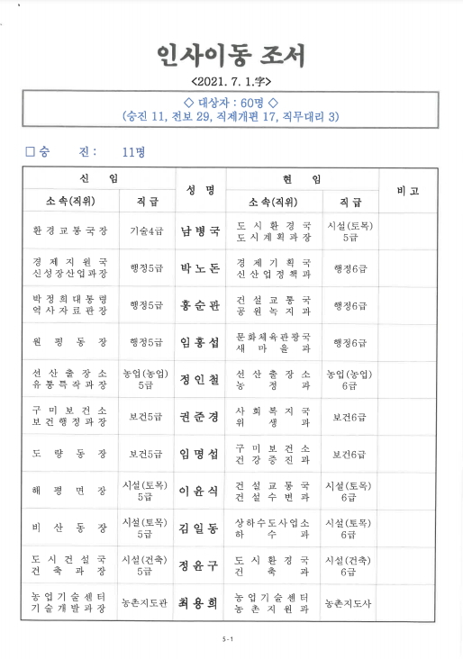 총 60명(승진 11명, 전보 29명, 직제개편17명, 직무대리3명)