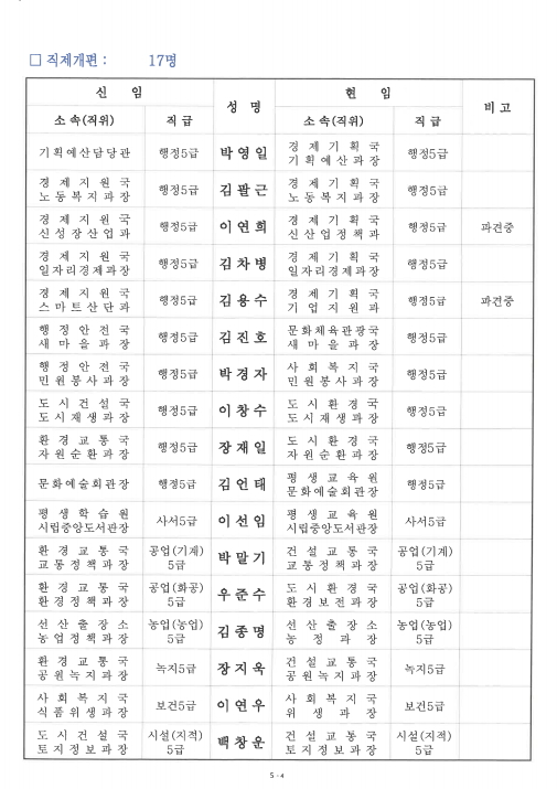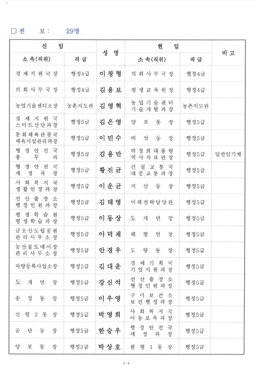 [구미=경북IT뉴스] 구미시는 7월 1일자로 국.과장급 승진 및 인사이동을 단행했다
