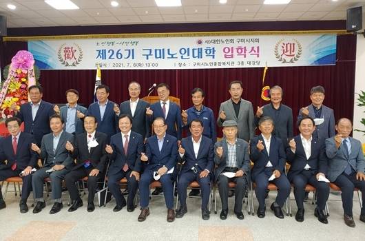[구미=경북IT뉴스] 구미시(시장 장세용)는 지난 6일 노인종합복지관 3층대강당에서 (사)대한노인회구미시지회(지회장 최경호) 주관으로, 노인대학생 100여명이 참여한 가운데 ‘제 26기 노인대학’입학식을 가졌다.