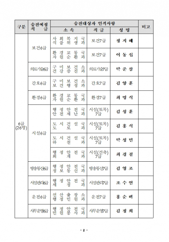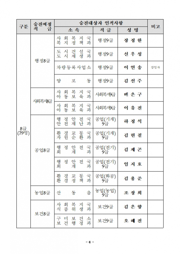 [구미=경북IT뉴스] 구미시가 2021년 7월 7일자 총 86명의 승진의결자 명단을 발표했다.